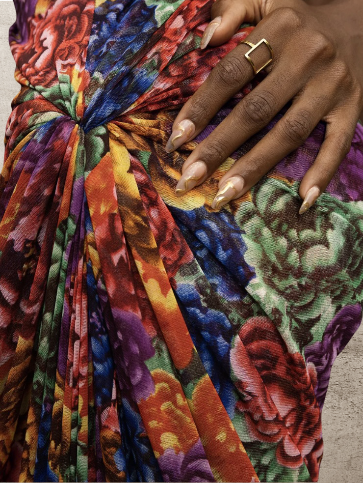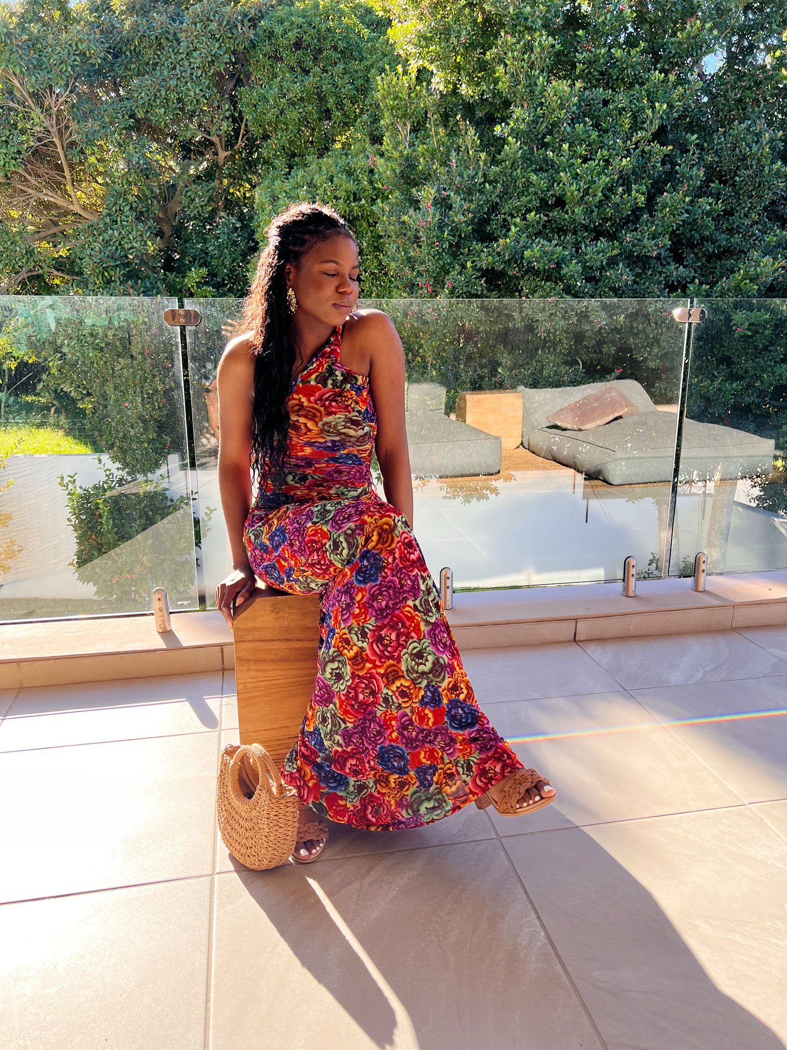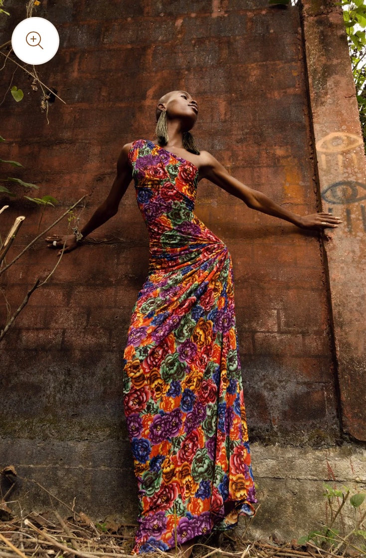 Rabi Monostrap Dress by Hertunba: Inspired by traditional Nigerian culture, this piece features a single shoulder fit with an asymmetrical touch. The signature ruched waist detailing accentuates curves, creating a stylish and eye-catching silhouette. A chic and fashionable choice for any event, the Rabi dress blends cultural heritage with modern elegance.